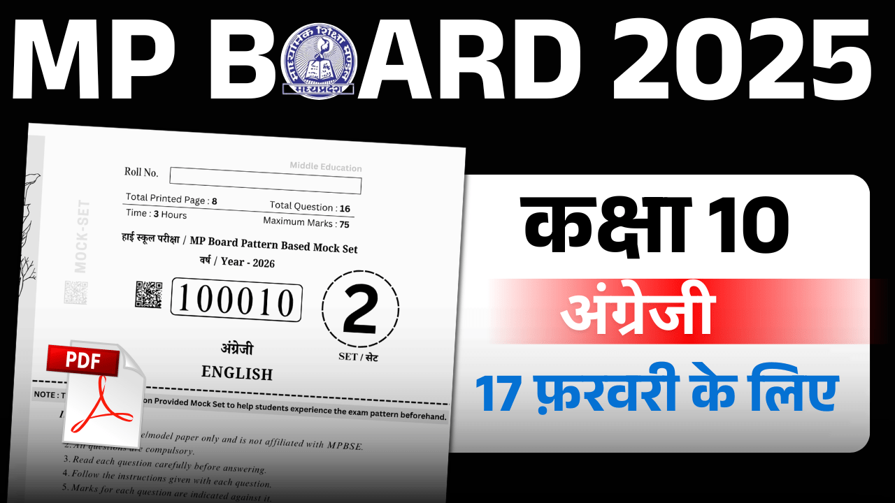 - कक्षा 10वीं अंग्रेजी पेपर वार्षिक परीक्षा 2026 | Mp Board Class 10th English paper Varshik Pariksha 2026 PDF Download