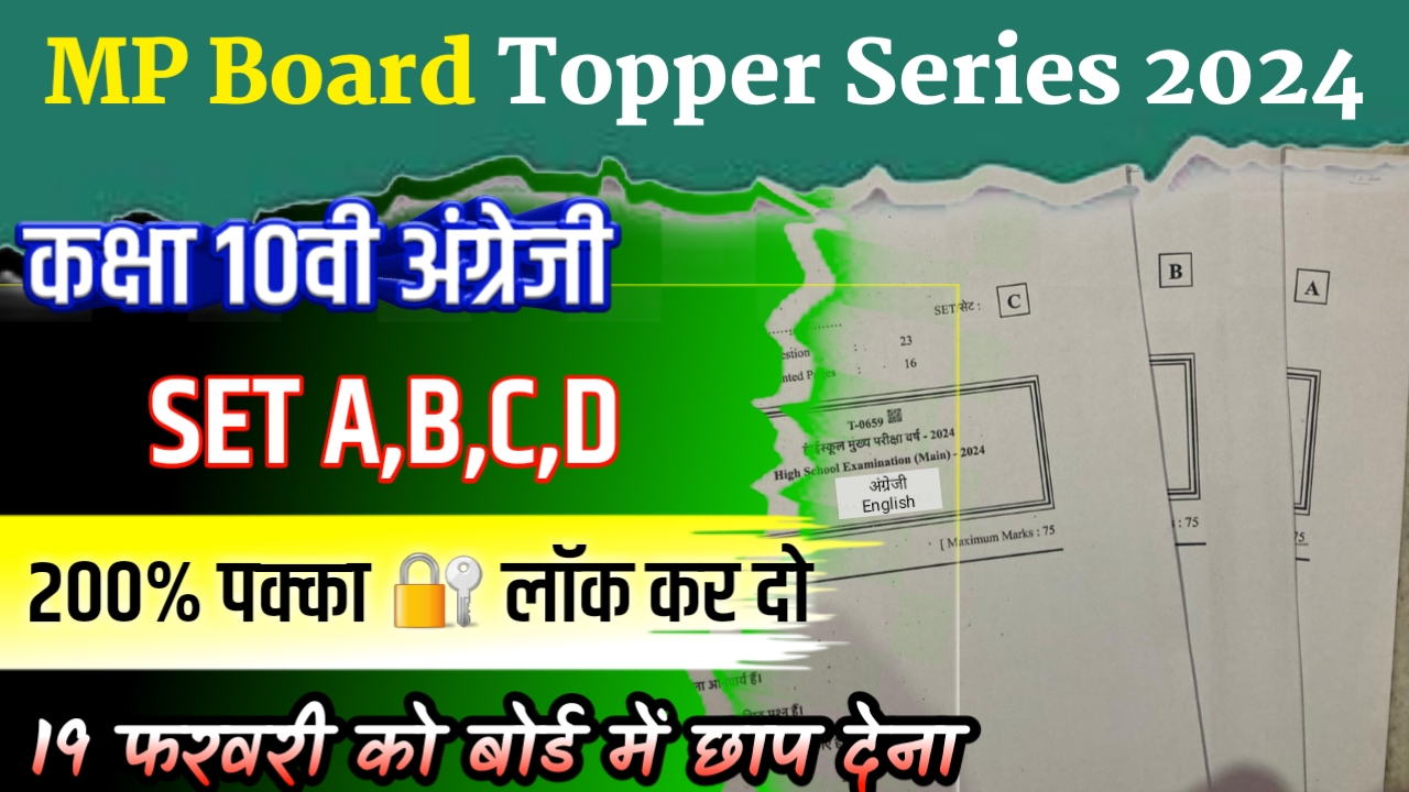 एमपी बोर्ड वार्षिक परीक्षा 2024 19 फ़रवरी से प्रारंभ होने जा रही हैं, कक्षा 10वी के सभी स्टूडेंट kaksha 10vi English Asli Paper 2024 Pdf के तलास में है, इस आर्टिकल में हम आपको एमपी बोर्ड कक्षा 10 अंग्रेज़ी का पेपर उपलब्ध करायेंगे। जिससे आप Mp Board pariksha 2024 English Class 10th Paper में अच्छे नंबर ला सके और अपने स्कूल के टॉपर बन सके।