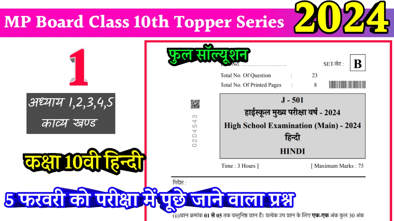 कक्षा दसवीं हिंदी वार्षिक पेपर 2024 / Class 10th hindi Varshik Paper 2024 mp board / 5 फ़रवरी पेपर
