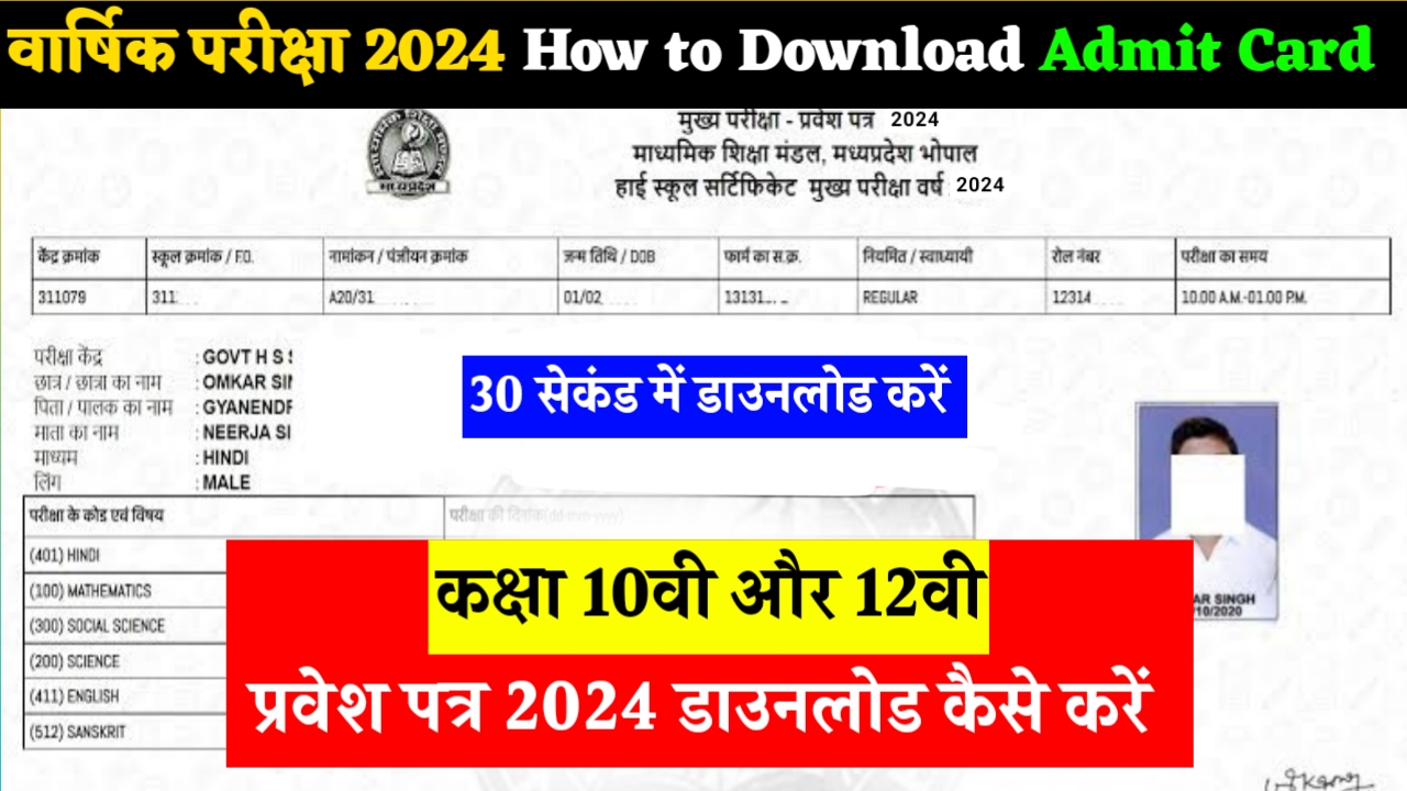 एमपी बोर्ड वार्षिक परीक्षा 2024 का प्रवेश पत्र कैसे डाउनलोड करे | How to download MP Board Class 10th & 12th Admit Card 2024