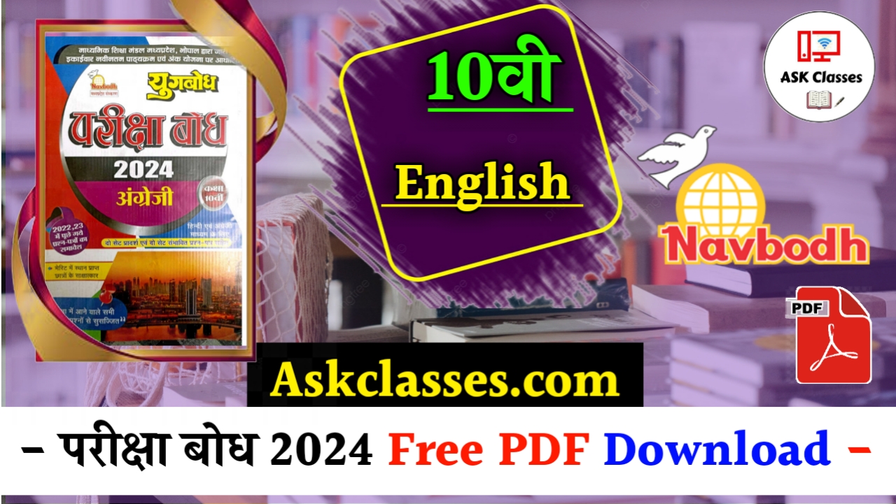 मैं आपको अवगत करना चाहता हूँ। की नवबोध प्रकाशन प्रति वर्ष कक्षा 10वी नया परीक्षा बोध जारी करता है, जो माध्यमिक शिक्षा मण्डल मध्य प्रदेश भोपाल के नवीनतम पाठ्य क्रम के अनुसार होता है। आप सभी छात्रो के लिए Pariksha Bodh 2024 Class 10th English pdf download करने का लिंक नीचे दिया गया है। आप आसानी से परीक्षा बोध 2024 की PDF download कर सकते है। इस पोस्ट में आपको नये सत्र के परीक्षा बोध का PDF दिया जाएगा। Class 10th English Pariksha Bodh 2024 Pdf download कर अपने पढ़ाई को बेहतर बनाये। इसके साथ ही अगर आप परीक्षा अध्ययन से अपनी पढ़ाई जारी रखना चाहते हो तो उसका भी पीडीएफ़ एक मात्र website askclasses.com में उपलब्ध कराया गया है। Pariksha adhyayn 2024 class 10th English pdf download