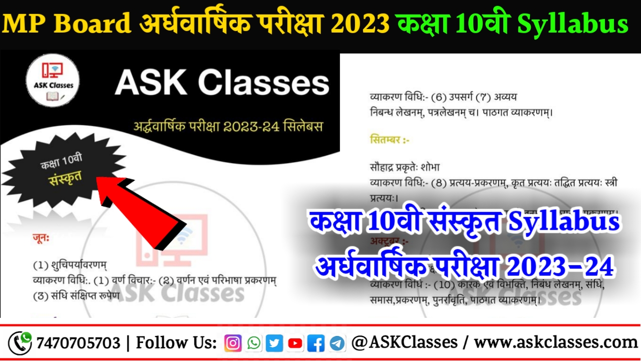 एमपी बोर्ड कक्षा 10वी संस्कृत अर्धवार्षिक परीक्षा 2024 सिलेबस | Class 10 Ardhvarshik Pariksha 2024 Sanskrit Syllabus Download