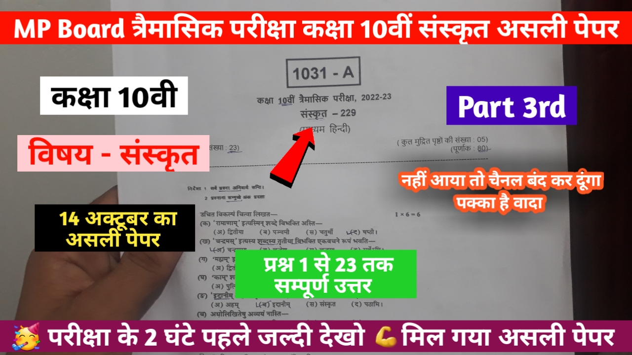 MP Board Class 10th Sanskrit Paper Traimasik Pariksha 2022 PDF Download || एमपी बोर्ड क्लास 10th संस्कृत पीडीएफ डाउनलोड