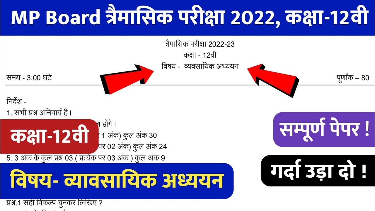 MP Board Class 12th Vyavsay adhayan Traimasik Pariksha 2023 Real Paper
