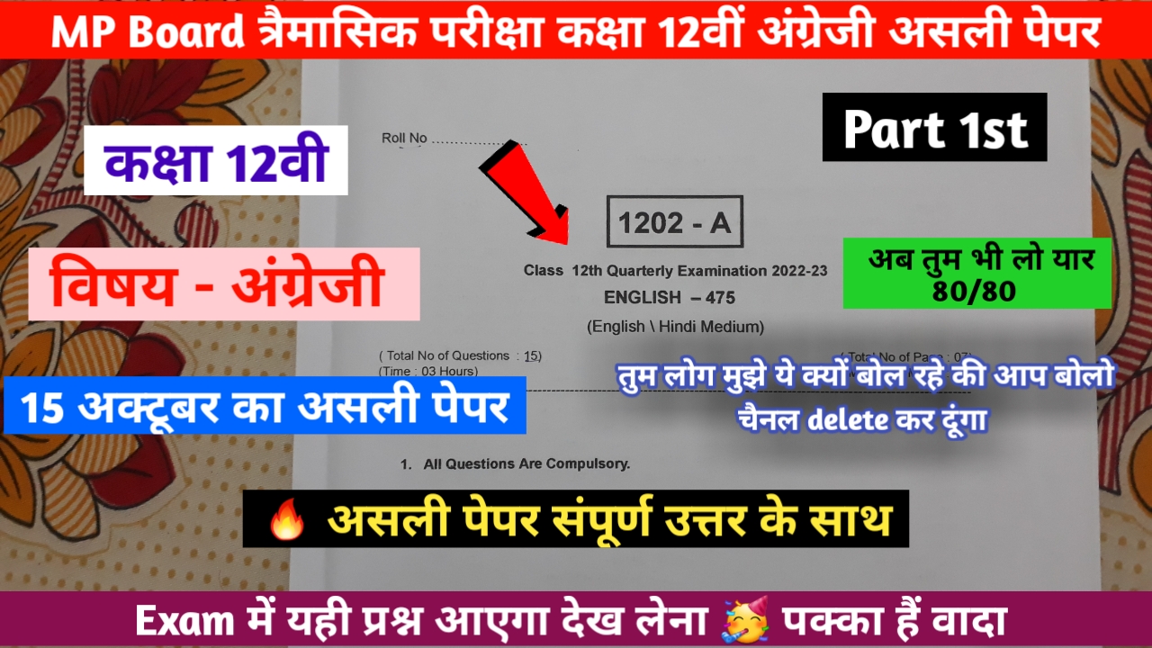 MP Board Class 12th English Paper Traimasik Pariksha 2022 PDF Download || एमपी बोर्ड क्लास 12th अंग्रेजी पीडीएफ डाउनलोड