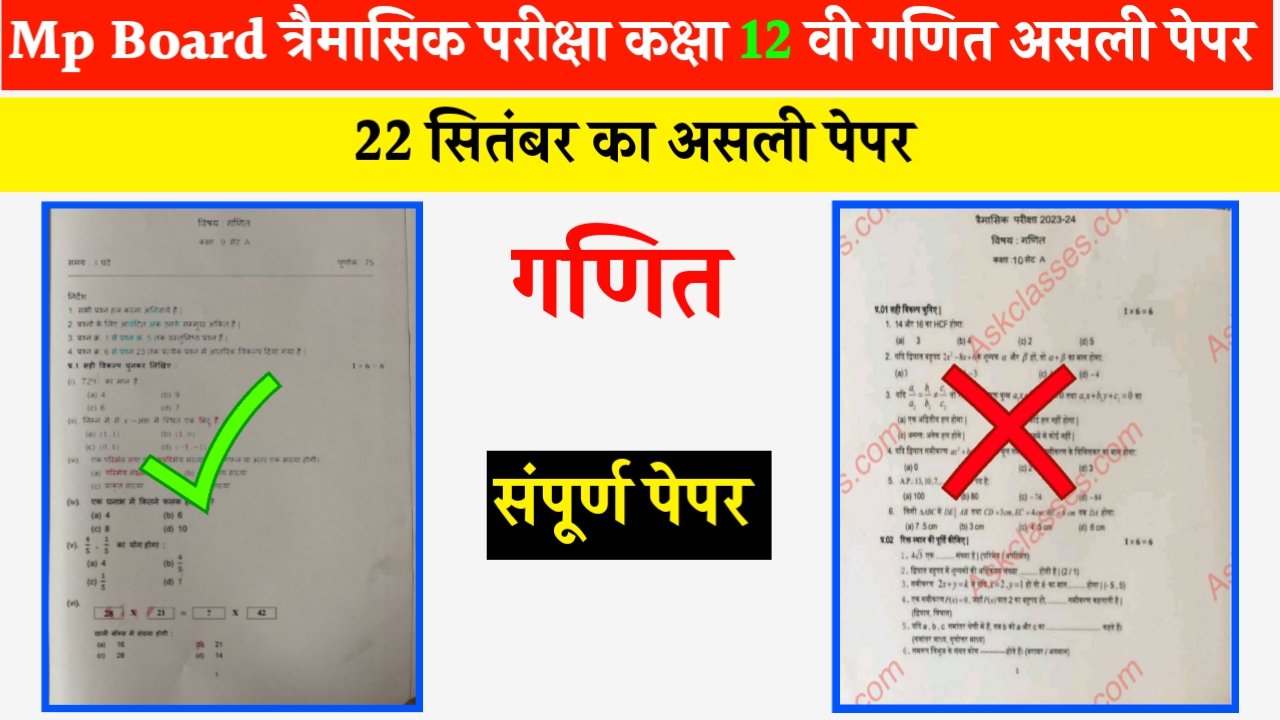 MP Board Class 12th Math Trimasik Paper 2023: एमपी बोर्ड त्रैमासिक पेपर का शुरुआत 12 सितम्बर को ही कर दिया गया था। और अब सभी छात्र गणित की तैयारी कर रहे है तो उनके लिए बहुत बड़ी खुश्खबरी आ चुकी है, इस लेख में बताया गया है, MP Board Class 12th Math Trimasik Paper 2023 के बारे यदि आप भी एमपी बोर्ड कक्षा 12 गणित पेपर में भाग लेने वाले हो और MP Board Class 12th Math Trimasik Paper 2023 की तलाश कर रहे हो तो अब आप एकदम सही जगह पर आ चुके है। यहाँ पर सभी छात्र का ओरिजिनल पेपर प्राप्त कर सकते है, और त्रैमासिक पेपर में अच्छे नंबर प्राप्त कर सकते है, MP Board Class 12th Math Trimasik Paper 2023 से जुडी सम्पूर्ण जानकारी के लिए इस लेख में बने रहे