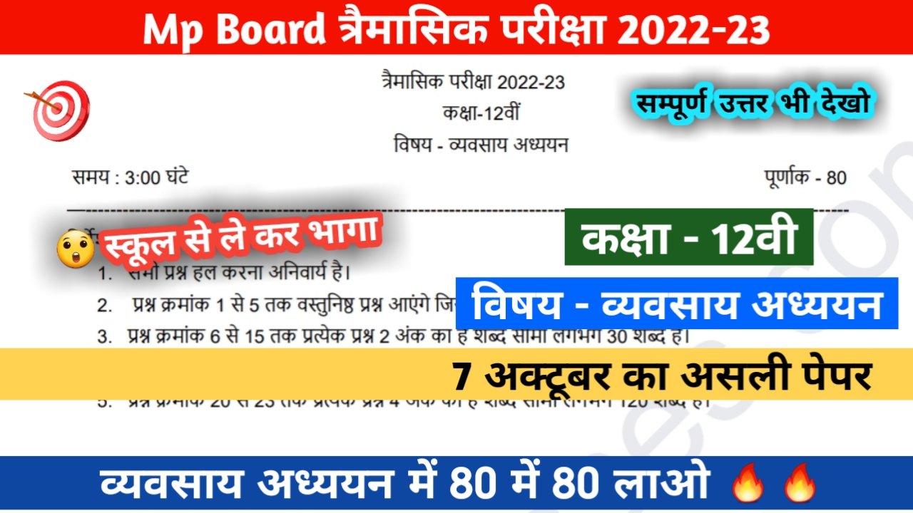 MP Board Class 12th Vyavsay Adhyayan Paper Traimasik Pariksha 2022 PDF Download || एमपी बोर्ड क्लास 12th व्यवसाय अध्ययन पीडीएफ डाउनलोड