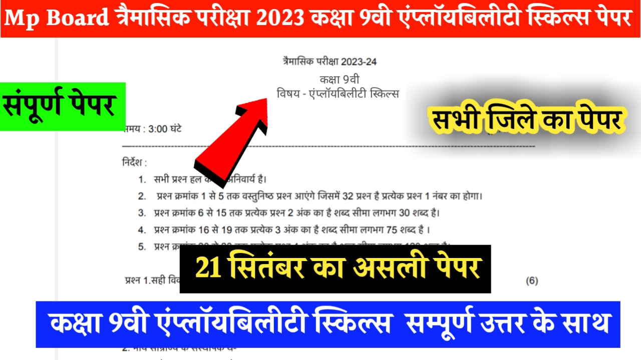 MP Board Class 9th IT Traimasik pariksha 2023 Real Paper