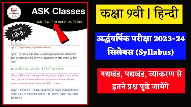 अगर आप एमपी बोर्ड अर्धवार्षिक परीक्षा 2023-24 में अच्छे नंबर लाना चाहते है तो, नीचे दिये गये सिलेबस को बहुत अच्छे से पढ़ कर जाना क्योकि नीचे आपको जो Ardhvarshik pariksha Class 9th Hindi syllabus दिखाया गया है। वही पाठ से प्रश्न आपके परीक्षा में देखने को मिलेगा क्यों की यह सिलेबस जारी करने वाला MP board Class 9th Hindi Ardhvarshik pariksha है। अर्धवार्षिक परीक्षा में पूरे के पूरे प्रश्न यही से देखने को मिलेगा।