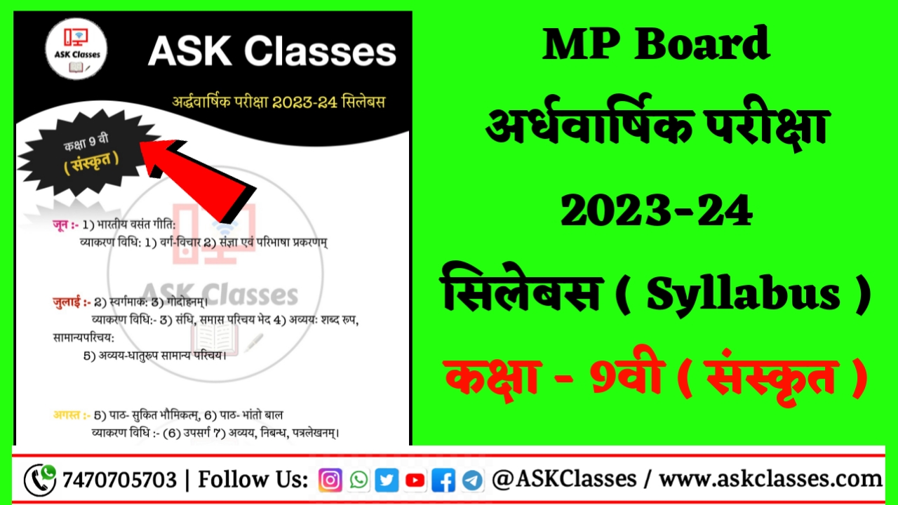 अगर आप एमपी बोर्ड अर्धवार्षिक परीक्षा 2023-24 में अच्छे नंबर लाना चाहते है तो, नीचे दिये गये सिलेबस को बहुत अच्छे से पढ़ कर जाना क्योकि नीचे आपको जो Ardhvarshik pariksha Class 9th Sanskrit syllabus दिखाया गया है। वही पाठ से प्रश्न आपके परीक्षा में देखने को मिलेगा क्यों की यह सिलेबस जारी करने वाला MP board Class 9th Sanskrit Ardhvarshik pariksha है। अर्धवार्षिक परीक्षा में पूरे के पूरे प्रश्न यही से देखने को मिलेगा।