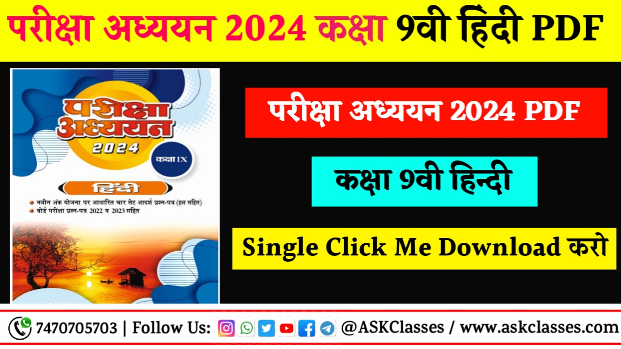 इस पोस्ट में आपको नये सत्र के परीक्षा बोध का PDF दिया जाएगा। Class 9th Hindi Pariksha Adhyayan 2024 Pdf download कर अपने पढ़ाई को बेहतर बनाये। इसके साथ ही अगर आप परीक्षा अध्ययन से अपनी पढ़ाई जारी रखना चाहते हो तो उसका भी पीडीएफ़ एक मात्र website askclasses.com में उपलब्ध कराया गया है। Pariksha Adhyayan 2024 class 9th Hindi pdf download
