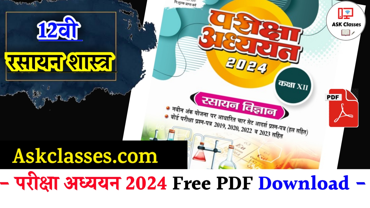 MP Board Pariksha Adhyayan 2024 pdf download : माध्यमिक शिक्षा मण्डल के नये सत्र में अध्ययन रत कक्षा 9वी से 12वी तक के बच्चो का परीक्षा अध्ययन 2024 की पुस्तक जारी हो चुकी है। अगर अपने अभी तक mp board pariksha adhyayan 2024 class 12 Chemistry (Rasayan Vigyan) पुस्तक नहीं ख़रादी है तो अपने पढ़ाई को बेहतर करने के लिए अपने नज़दीकी स्टोर से ख़रीद सकते है। अगर आप किसी भी कारण बस नहीं ख़रीद पा रहे तो टेंशन की कोई बात नहीं Askclasses.com में pariksha adhyayan Chemistry (Rasayan Vigyan) class 12 pdf उपलब्ध कराई जाएगी। जिससे आप पढ़ाई करके बहुत अच्छे नंबर बना सकते है।