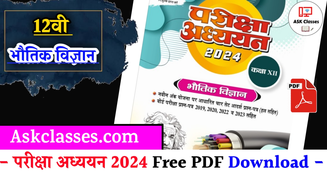 MP Board Pariksha Adhyayan 2024 pdf download : माध्यमिक शिक्षा मण्डल के नये सत्र में अध्ययन रत कक्षा 9वी से 12वी तक के बच्चो का परीक्षा अध्ययन 2024 की पुस्तक जारी हो चुकी है। अगर अपने अभी तक mp board pariksha adhyayan 2024 class 12 पुस्तक नहीं ख़रादी है तो अपने पढ़ाई को बेहतर करने के लिए अपने नज़दीकी स्टोर से ख़रीद सकते है। अगर आप किसी भी कारण बस नहीं ख़रीद पा रहे तो टेंशन की कोई बात नहीं Askclasses.com में pariksha adhyayan Physics (Bhautik Shastra) class 12 pdf उपलब्ध कराई जाएगी। जिससे आप पढ़ाई करके बहुत अच्छे नंबर बना सकते है।
