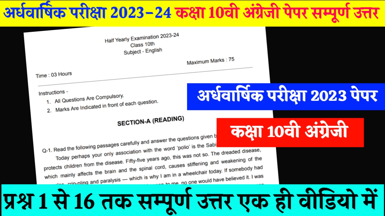 कक्षा 10वी अंग्रेज़ी अर्द्धवार्षिक परीक्षा 2023-24 असली पेपर