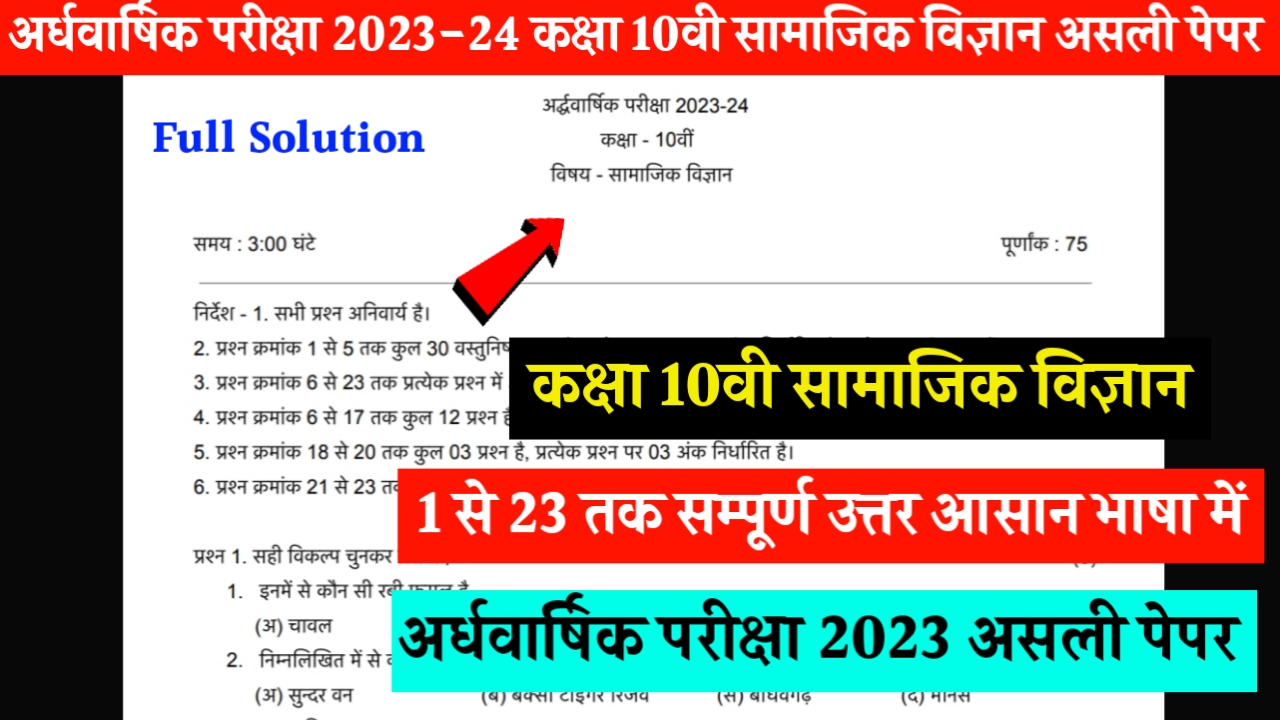 कक्षा 10वी सामाजिक विज्ञान अर्द्धवार्षिक परीक्षा 2023-24 असली पेपर