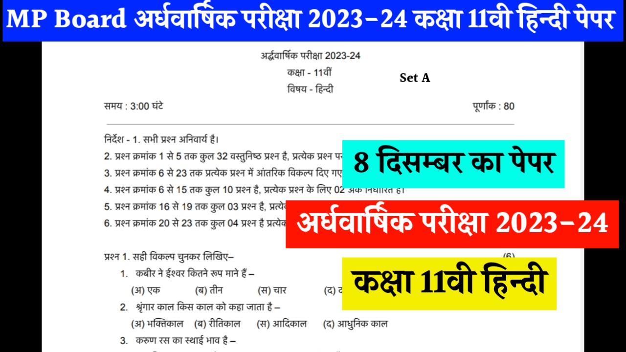 [SET-A] MP Board 11th Hindi Ardhvarshik Paper 2023-24 PDF : एमपी बोर्ड 11वीं हिंदी अर्द्धवार्षिक पेपर 2023 असली पेपर