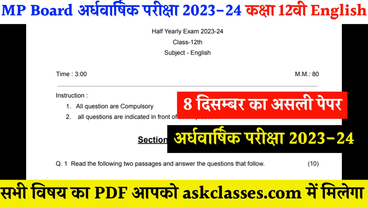 [SET-A] MP Board 12th English Ardhvarshik Paper 2023-24 PDF : एमपी बोर्ड 12वीं अंग्रेज़ी अर्द्धवार्षिक पेपर 2023 असली पेपर