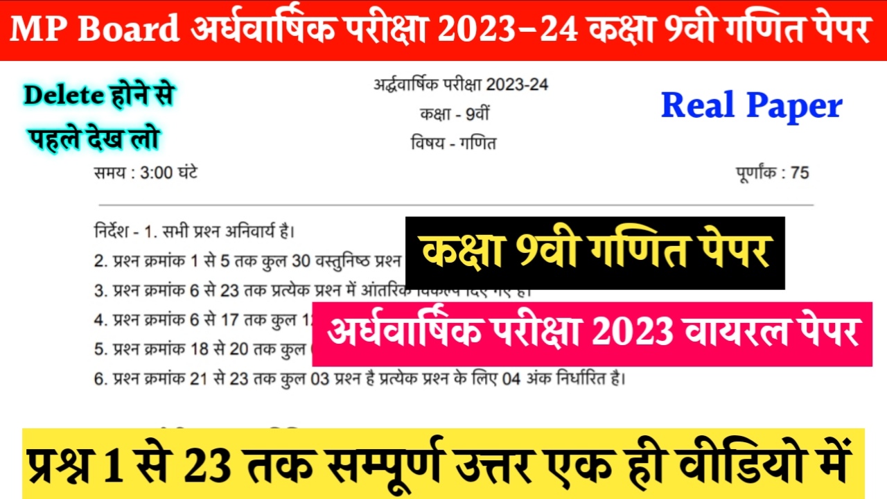 MP Board Class 9th Ganit Ardhvarshik Paper 2023
