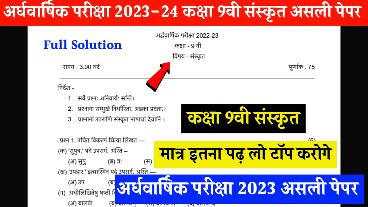 कक्षा 9वी संस्कृत अर्द्धवार्षिक परीक्षा 2023-24 असली पेपर