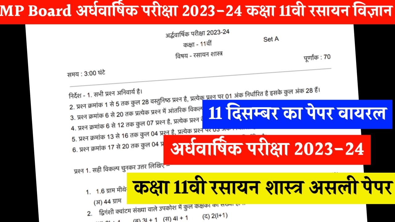 एमपी बोर्ड कक्षा 11 वी रसायन शास्त्र अर्द्धवार्षिक परीक्षा 2023-24