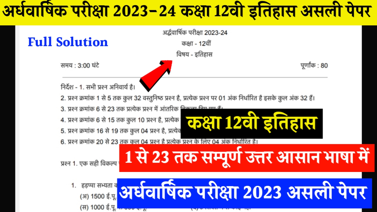 कक्षा 12वी इतिहास अर्द्धवार्षिक परीक्षा 2023-24 असली पेपर