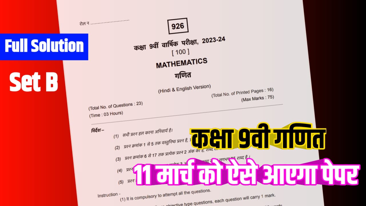 कक्षा 9वी गणित वार्षिक परीक्षा 2023-24 असली पेपर