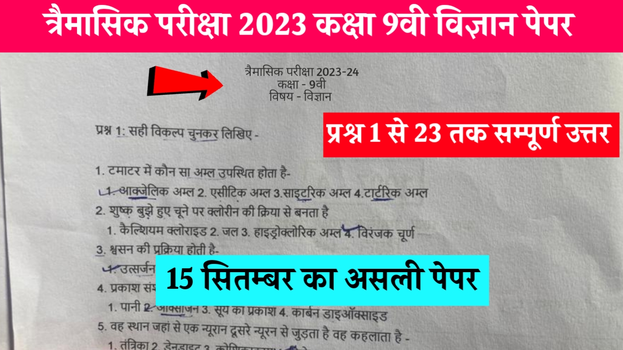 kaksha 9vi Vigyan paper traimasik pariksha 2023 pdf download
