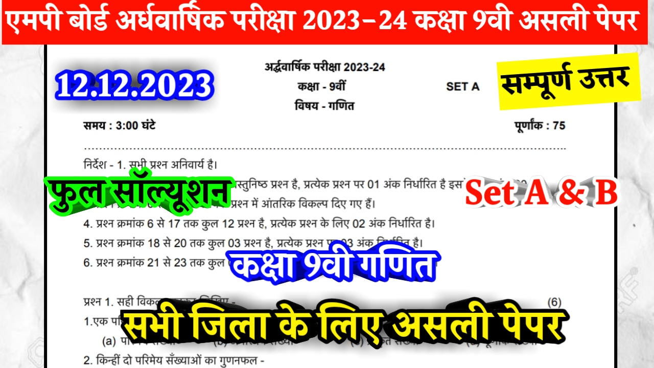 [SET-A] MP Board 9th Ganit Ardhvarshik Paper 2023-24 PDF : एमपी बोर्ड 9वीं गणित अर्द्धवार्षिक पेपर 2023 असली पेपर