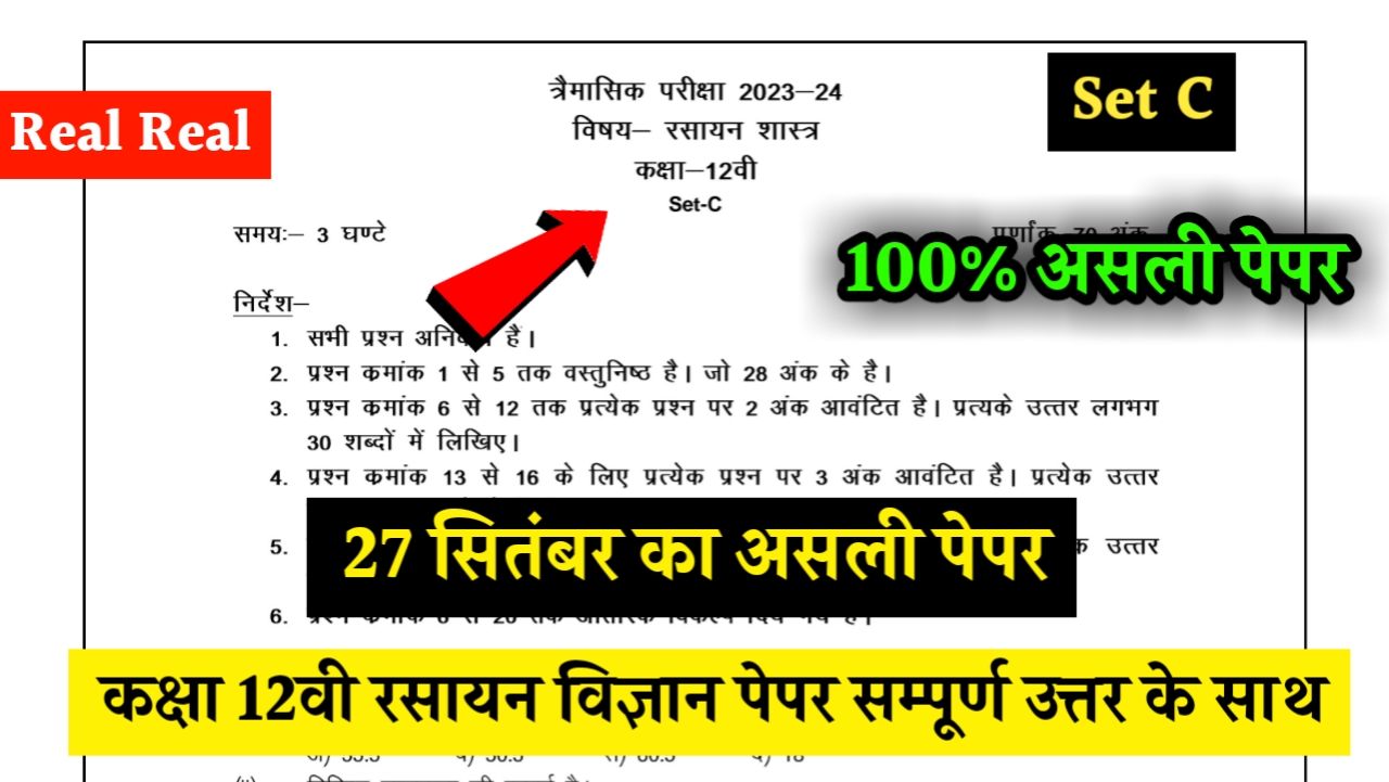MP Board Class 12th Chemistry Trimasik Paper 2023 : द्वारा आयोजित त्रैमासिक परीक्षा का आगमन शुरू हो चूका है, और विद्यार्थी सब्जेक्ट वाइज ओरिजिनल पीडीऍफ़ की तलाश कर रहे है तो जैसा की आप सबको पता होगा 12 सितम्बर से हिंदी का पेपर शुरू हो रहा है और सभी छात्र MP Board Class 12th rasayan Trimasik Paper 2023 की तलाश कर रहे है, तो MP Board Class 12th Rasayan Trimasik Paper 2023 की तलाश कर रहे छात्रों के लिए बड़ी अपडेट सामने आ रही है, आज के इस लेख में हम आप सबको MP Board Class 12th set c Chemistry Trimasik Paper 2023 Original pdf प्रोवाइड करने वाले है ताकि आप सब MP Board set c Class 12th Chemistry Trimasik Paper 2023 के माध्यम से अपनी तैयारी पूरी करके त्रैमासिक परीक्षा में उत्तीर्ण कर सके।