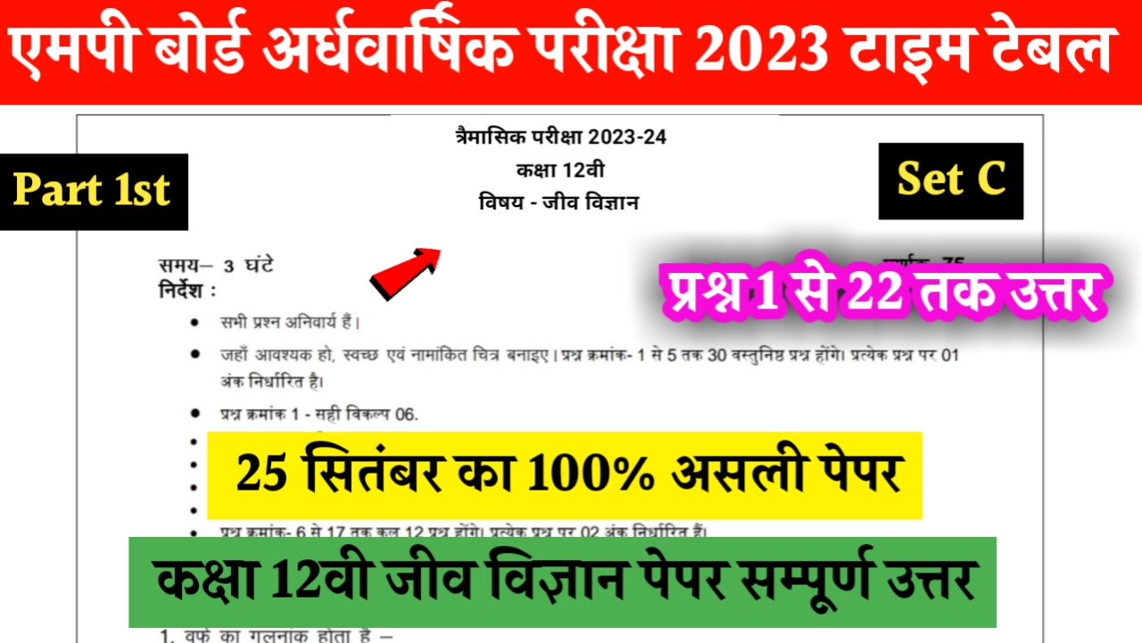एमपी बोर्ड कक्षा 12वी जीव विज्ञान त्रैमासिक परीक्षा 2023-24